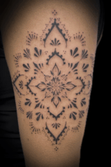 Hi, I’m Sierra Vecchitto — also known as Sierra Fawn Art. I’ve been tattooing for about a year and continue to grow my craft every day! I approach every tattoo as a collaboration, working closely with each client to create pieces that are both timeless and personal. With a strong attention to detail, I take pride in thoroughly researching every design to ensure the tattoo is everything my client wants and more! Some things you might learn about me are that I love nature, creating, traveling, and watching films or anime! Outside of tattooing, I enjoy making miniature acrylic paintings of animals, especially of bats, that are as small as 2x2 inches. I am always excited to meet new people and I look forward to making your tattoo dreams come true!